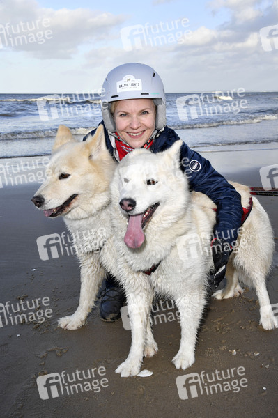 Schauspielerin, Prominenz, Celebrity, Celebrities, Tier, Hund, Hunde, Huskys, Husky, Unterhaltung, Entertainment, Schlittenhunderennen, Ostsee, Sport