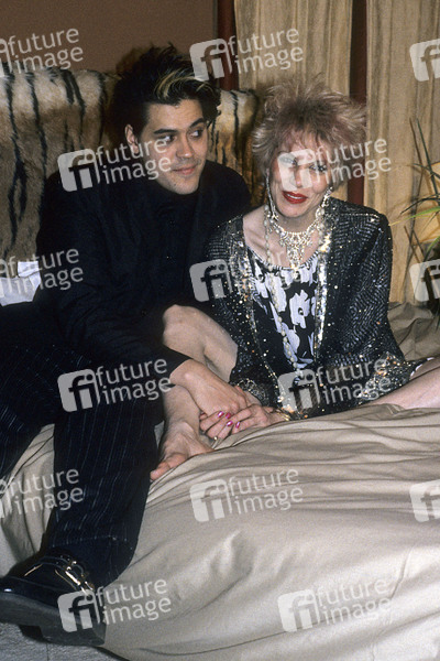 Angela 'Angie' Bowie mit ihrem Freund bei einem Photoshooting in ihrem Schlafzimmer. London, 20.04.1985