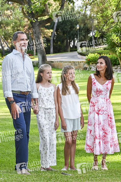 König Felipe VI. von Spanien, Prinzessin Leonor, Prinzessin Sofia und Königin Letizia von Spanien beim Sommer Photocall im Marivent Palace. Palma de Mallorca, 04.08.2019