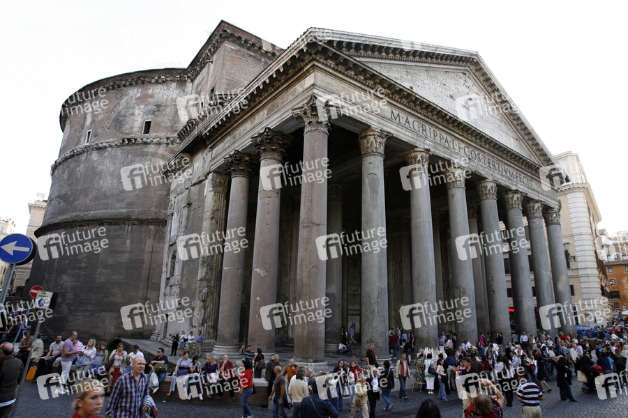 ein allen (Haupt-)Göttern geweihtes Heiligtum, Kaiser Hadrian ließ es auf dem Marsfeld in Rom zwischen 118 und 125 n. Chr. erbauen, war für länger als 1700 Jahre die größte Kuppel der Welt gemessen am Innendurchmesser, seit dem 13. Mai 609 eine römisch-katholische Kirche, das Hauptgebäude des Pantheons ist ein überwölbter Rundbau von ca. 43 m Innendurchmesser und -höhe, der Schlussstein hat eine neun Meter große Öffnung (Opaion) - die als einzige Lichtquelle dient