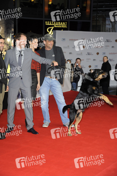 Jan Josef Liefers, Wotan Wilke Möhring mit Hund Bruno, Jasmin Gerat, Marc Rothemund