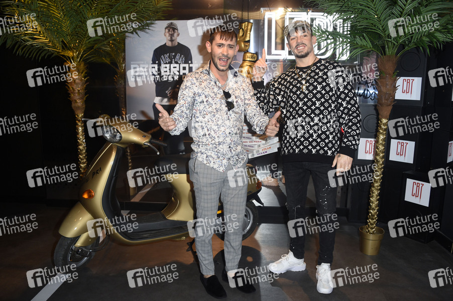 Daniele Negroni mit Capital Bra Wachsfigur bei der Eröffnung der Ausstellung 'Berlin 100' im Madame Tussauds. Berlin, 15.07.2021