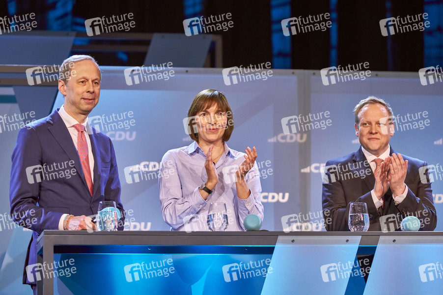 Hendrik Hoppenstedt, Mareike Lotte Wulf und Tilman Kuban bei einer Wahlkampfveranstaltung der CDU zum Bundestagswahlkampf 2025 im Maritim Hotel Airport. Langenhagen, 18.01.2025