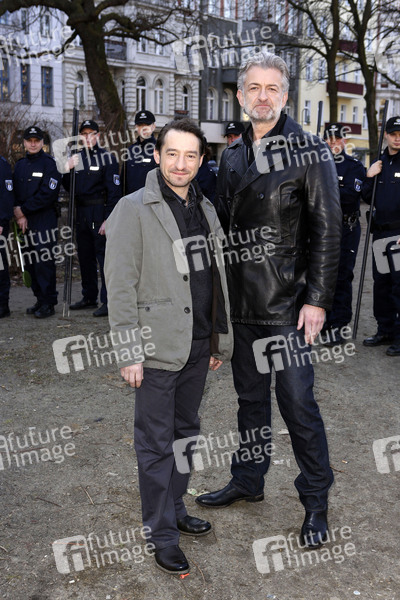 Boris Aljinovic und Dominic Raacke beim Setfototermin zum ARD-Krimi 'Tatort - Gegen den Kopf' (AT) am U-Bahnhof Schönleinstraße. Berlin, 05.03.2013