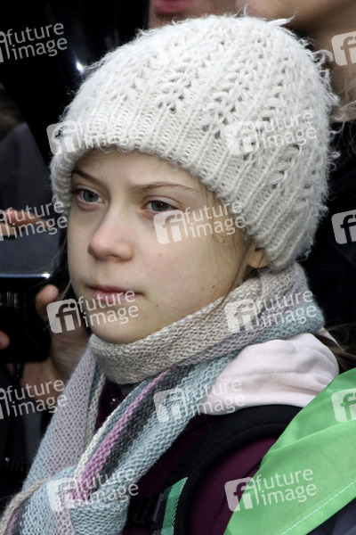 Greta Thunberg bei der Auftaktkundgebung zur 'Fridays for Future' Demonstration am Heiligengeistfeld, nach der zehntausende Teilnehmer durch die Innenstadt zogen. Hamburg, 21.02.2020