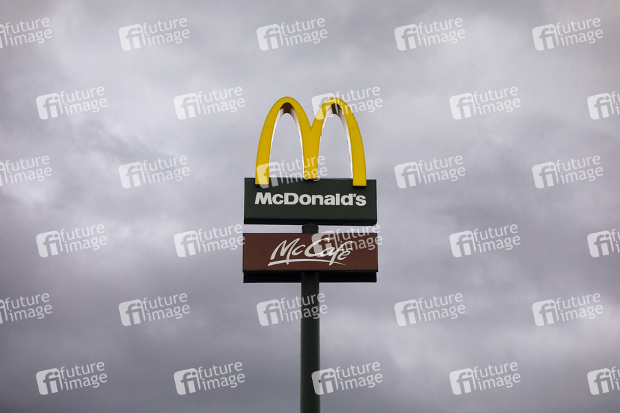 McDonald's, McDonald, McDonalds, Burger, Fast Food, Fastfood, Restaurant, DriveIn, Drive In, Drive-in, Drive-thru, Schnellrestaurant, Ernährung, Fritten, Softdrinks, Cola, Menü, Sparmenü, Whopper, BigMäc, Big Mäc, Cheeseburger, Hamburger, Ketchup, Majo, McCafe, Schnellrestaurantkette, Systemgastronomie, Franchising, Konkurrenz, Filiale, Logo, Mahlzeit, Kalorien, Fett, gesunde Ernährung, Ernährungspyramide, Fast-Food-Kette, Symbolbild, Symbolfoto