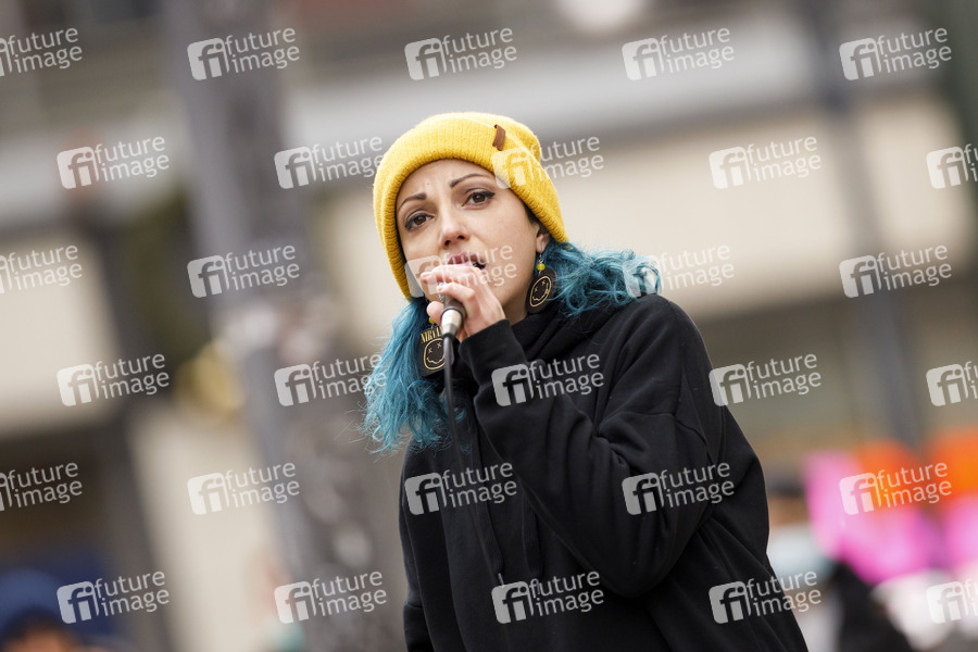 Daiana Mingarelli von Daiana Lou bei einem öffentlichen Konzert auf dem Alexanderplatz. Berlin, 15.12.2020