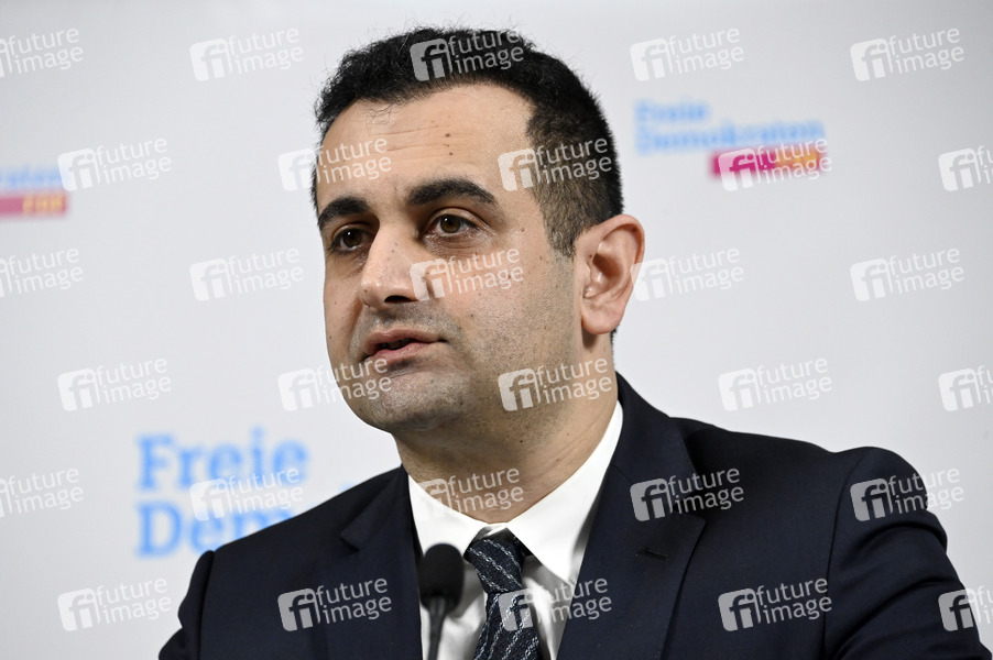 FDP-Generalsekretär Bijan Djir-Sarai beim Statement zu den digitalen Sitzungen des Präsidiums und des Bundesvorstands der Freien Demokraten im Hans-Dietrich-Genscher-Haus. Berlin, 24.01.2022