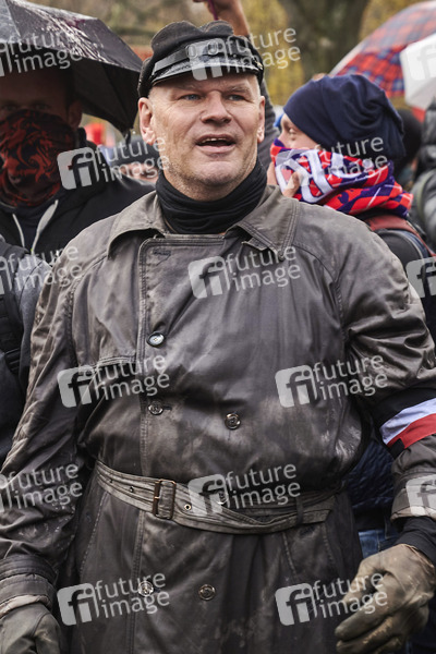 Neonazi Thomas 'Steiner' Wulff - Tausende Demonstranten protestieren am Brandenburger Tor und im Regierungsviertel gegen die Corona-Politik der Regierung anlässlich der Bundestagsitzung zum Infektionsschutzgesetz. Die Polizei löst den Protest auf. Dabei kommt es zu Festnahmen, dem Einsatz von Wasserwerfern und Verstößen gegen die Maskenpflicht. Proteste in unmittelbarer Nähe des Bundestags waren zuvor untersagt worden. Berlin, 18.11.2020