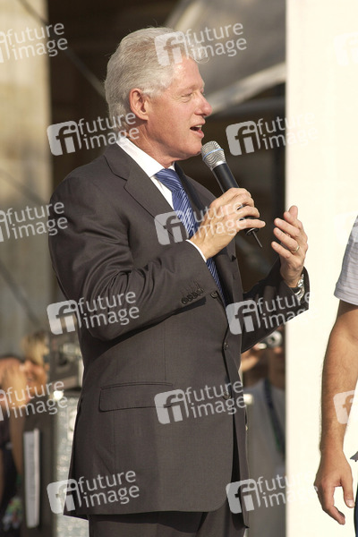 Bill Clinton spricht in der Halbzeit während des Enspiels Italien gegen Frankreich bei der FIFA Fußballweltmeisterschaft 2006 zu den Fans im Oympiastadion. Berlin, 09.07.2006