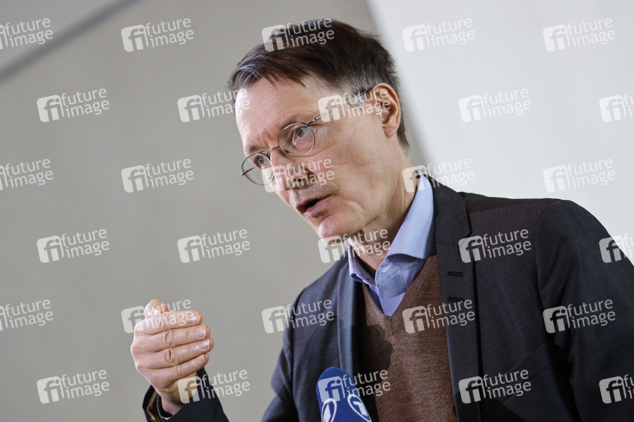 Karl Lauterbach beim Pressestatement nach der Befragung der Bundesregierung in der 217. Sitzung des Deutschen Bundestages im Reichstagsgebäude. Berlin, 24.03.2021