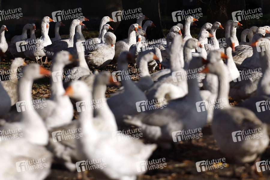 St. Martin, Martinsgans, Martinsgänse, Gans, Gänse, Mastgans, Mastgänse, Freiland, Freilandhaltung, Bio-Fleisch, artgerechte Haltung, Geflügel, Geflügelfleisch, Weihnachtsgans, Weihnachtsgänse, Gansbraten, Herde, Herdentrieb, Gänsemast, Fleisch, Fleischproduktion, Federn, Mästen, Weidemast, Zuchtgans, Zuchtgänse, Haustier, Haustiere, Symbolbild, Symbolfoto