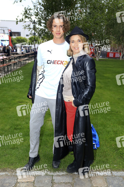 Tina Ruland mit Sohn Jahvis Rahmoune bei der Ankunft zum Bild EM Kick Off Event zum EM-Eröffnungsspiel Deutschland vs. Schottland im BILD-EM-Garten by Telegraphenamt. Berlin, 14.06.2024