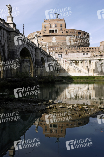 ursprünglich als Mausoleum für Kaiser Hadrian (76–138) und seine Nachfolger errichtet und später von verschiedenen Päpsten zur Burg umgebaut, ab dem 10. Jahrhundert war die Engelsburg im Besitz der Päpste und diente als Zuflucht, diente in späteren Jahren auch als Gefängnis und Folterkammer der Inquisition, heute Museum, Fluss Tiber / Tevere
