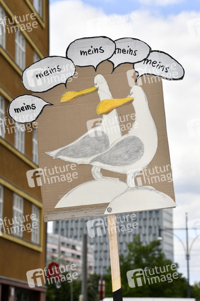 Demonstrantin bei einer 'Corona' Demonstration am Alexanderplatz. Am Samstag sind rund um den Rosa-Luxemburg-Platz mehrere 'Hygienedemos' und Gegenproteste geplant. Am Alexanderplatz sollen ab 14 Uhr insgesamt zehn Kundgebungen starten. Berlin, 16.05.2020