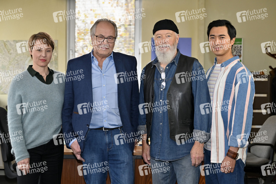 Katja Danowski, Hartmut Volle, Bill Mockridge und Aaron Le beim Fototermin am Set der ARD TV-Serie 'Rentnercops' in der Stolberger Straße. Köln, 01.12.2022