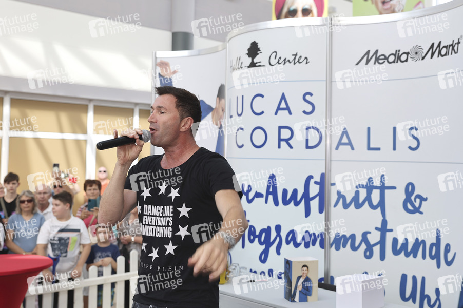 Lucas Cordalis bei einem Live-Auftritt mit Autogrammstunde am MediaMarkt im Halle Center Peißen. Halle (Saale), 28.07.2022
