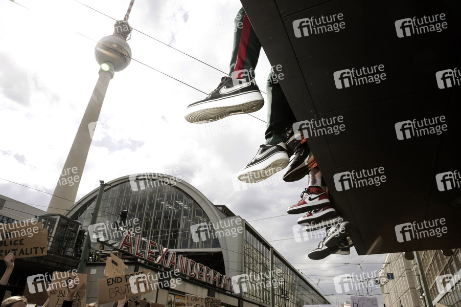 Demonstranten bei der 'Silent Demo' gegen Rassismus am Alexanderplatz. Berlin, 06.06.2020