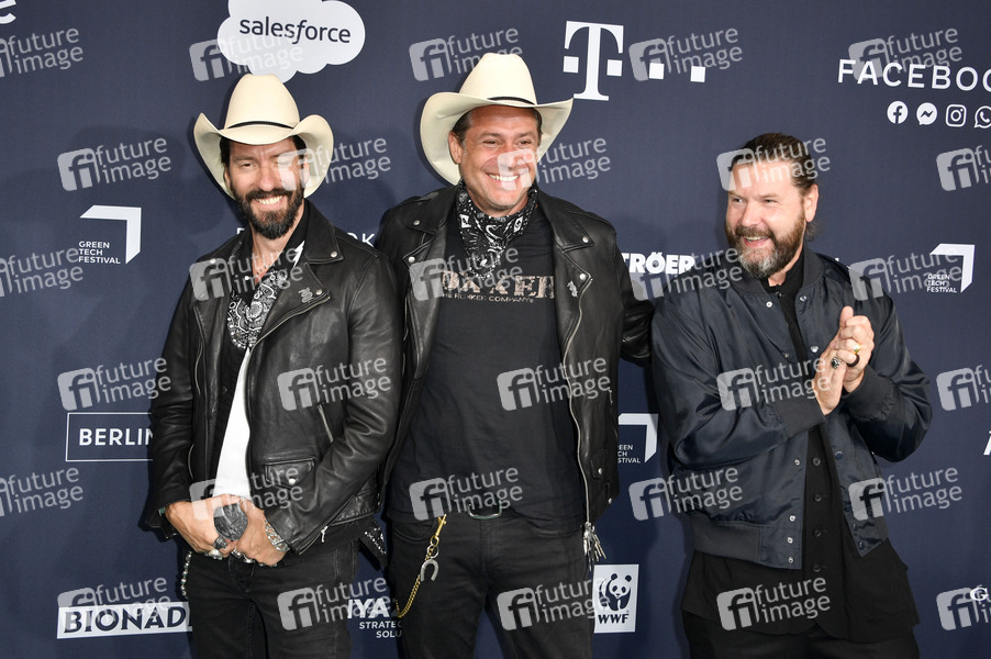 Alec Völkel und Sascha Vollmer von The BossHoss mit Rea Garvey bei den Green Awards 2020 im Kraftwerk Berlin. Berlin, 18.09.2020