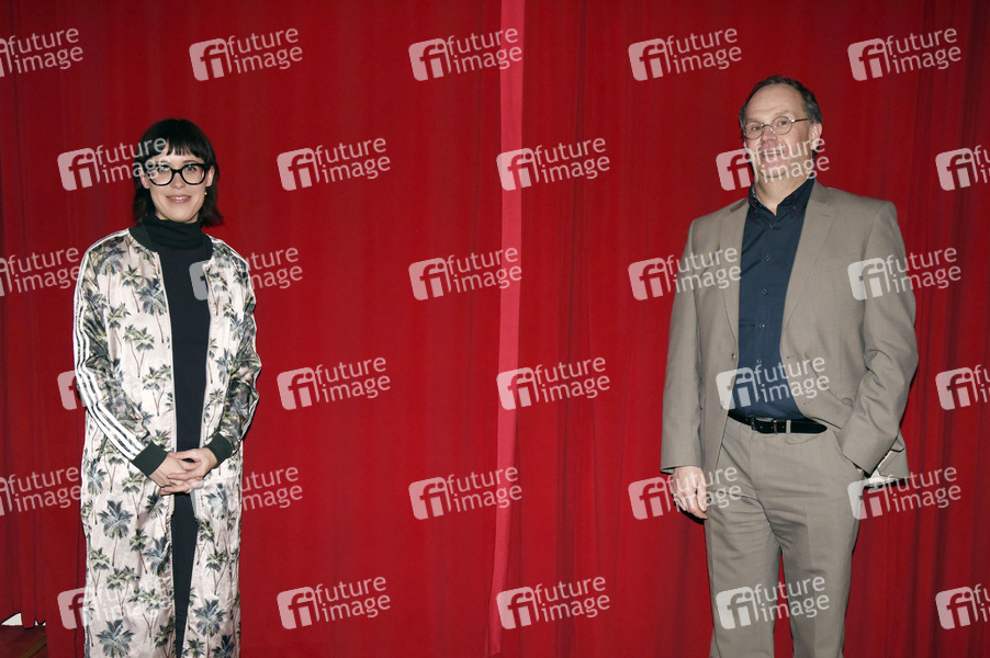 Eva Karl-Faltermeier und Theaterleiter Matthias Riedel-Rüppel beim digitalen Kabarettprogramm 'Es geht dahi' im Kleinen Theater. Haar, 28.01.2021