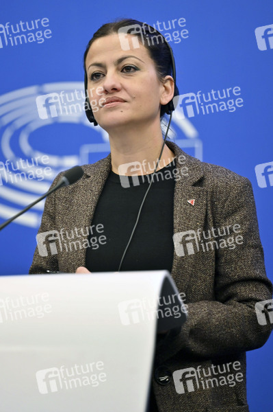 Pressekonferenz, PK, Pressestatement, Strasbourg, Europaparlament, EU-Parlament, EP, Parlament der Europäischen Union, Parlamentum Europaeum, Mitglied des Europäischen Parlaments, Politikerin, Spanien, IU