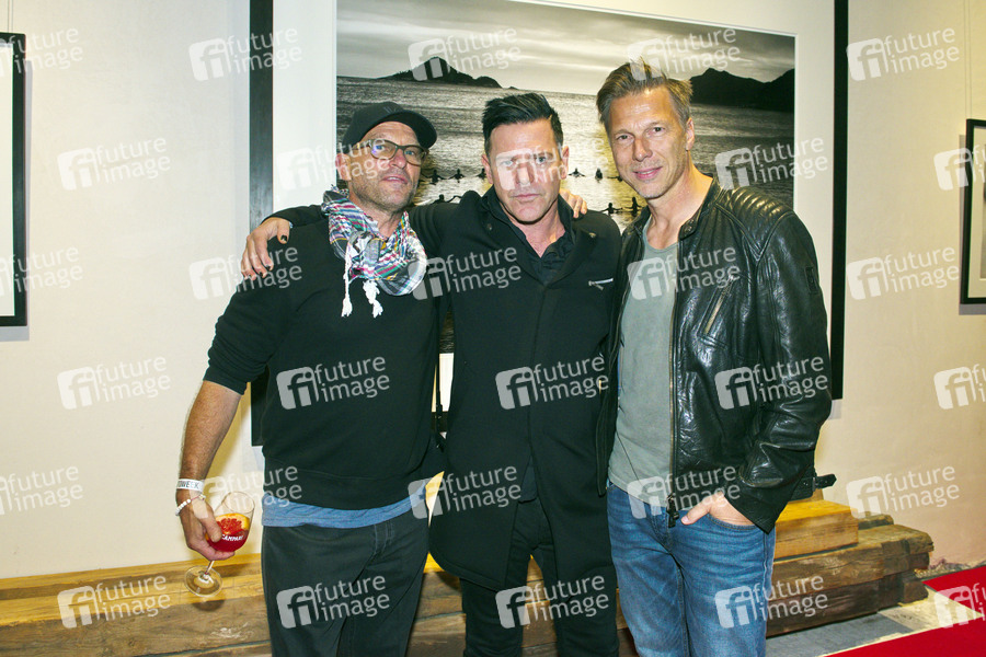 Thomas Kretschmann, Richard Kruspe und Olaf Heine bei der Eröffnung der Ausstellungen 'Erwin Blumenfeld', 'Olaf Heine - Saudade' und 'Walls Come Tumbling Down' im Rahmen der Berlin Photo Week 2019 in der Chaussee 36. Berlin, 10.10.2019