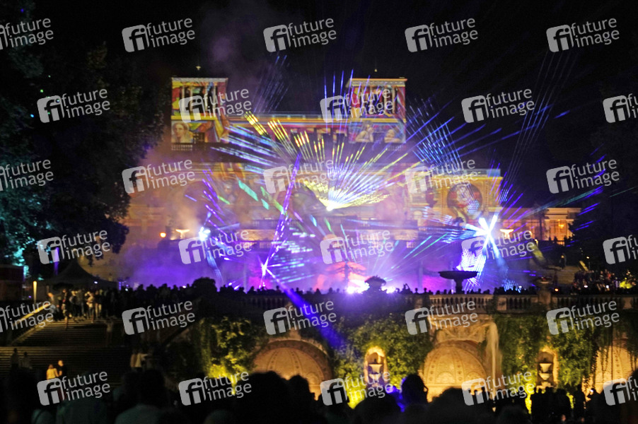 Lasershow bei der XXI. Potsdamer Schlössernacht 2019 im Schlosspark Sanssouci. Potsdam, 17.08.2019