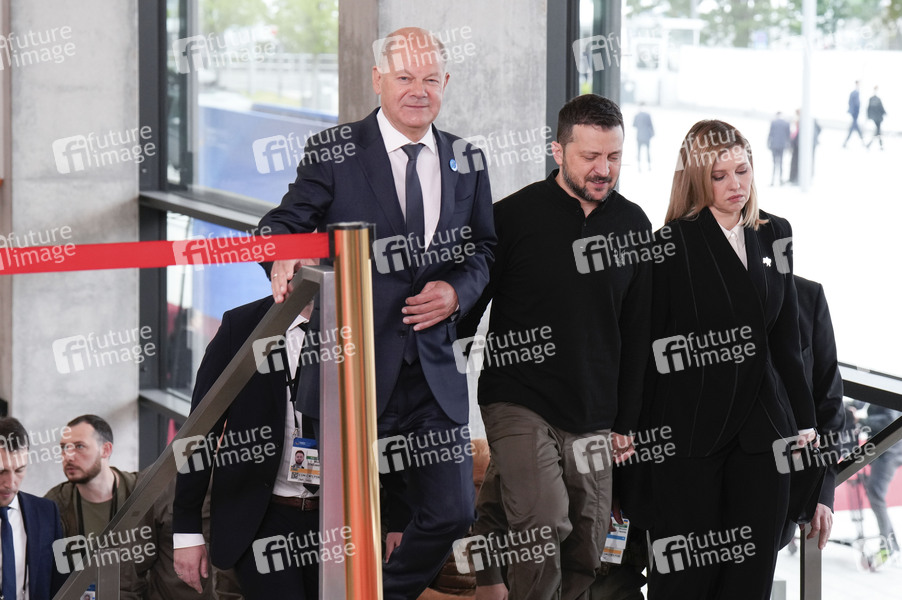 Olaf Scholz und Wolodymyr Selenskyj mit Ehefrau Olena Selenska bei der Eröffnung der Ukraine Recovery Conference 2024 unter dem Motto 'United in Defense. United in Recovery. Stronger together.', auf dem Messegelände. Berlin, 11.06.2024