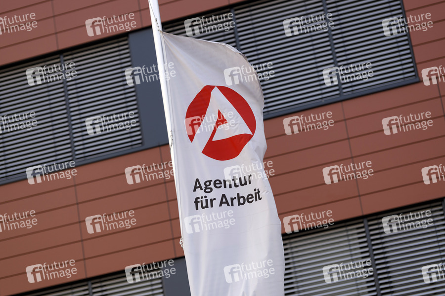 Arge-Logo an der Agentur für Arbeit in Ossendorf. Die Corona-Krise lässt die Zahl der Arbeitslosen weiter steigen, während noch ein vereinfachter Antrag für die Beantragung von Grundsicherungsleistungen ohne Vermögensprüfung gilt. Köln; 04.08.2020