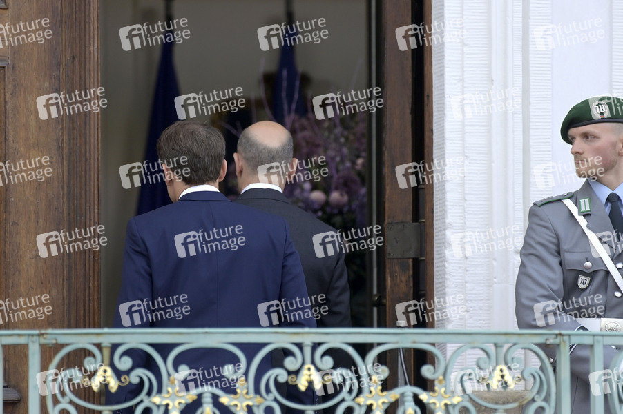 Emmanuel Macron und Olaf Scholz beim Treffen des Deutsch-Französischen Ministerrats im Gästehaus der Bundesregierung Schloss Meseberg. Meseberg, 28.05.2024