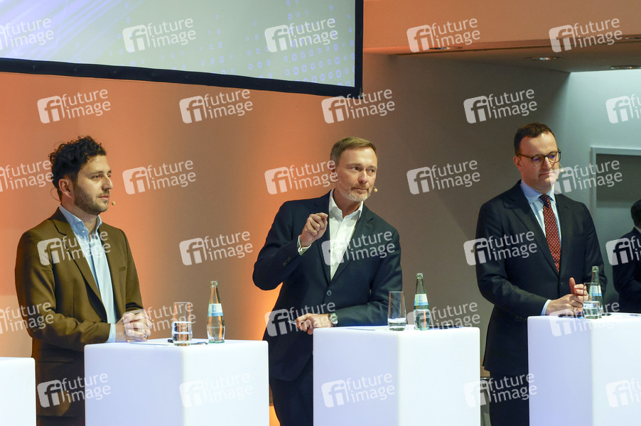 Felix Banszak, Christian Lindner undJens Spahn beim Wahlforum Köln zur Bundestagswahl 2025 in der Alten Schalterhalle der IHK Köln. Köln, 19.02.2025