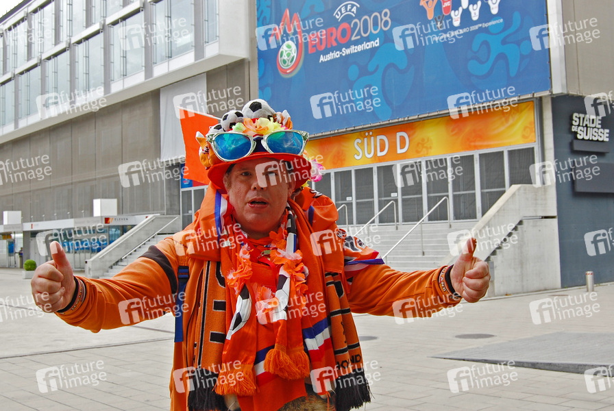 Fußball-Europameisterschaft 2008 / UEFA EURO 2008 in Österreich und der Schweiz. Italienische und Holländische EM Fans warten am Stade de Suisse in Bern auf ihre Teams zum Abschlußtraining, bevor das große Spiel Niederlande gegen Italien startet