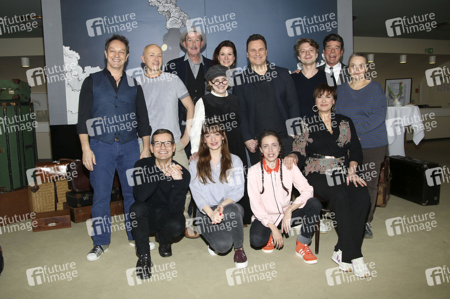 Max Gertsch, Christoph Marti, Tobias Bonn, Kai Maertens, Nellie Thalbach, Katharina Thalbach, Nadine Schori, Guido Maria Kretschmer, Anna Thalbach, Alexander Dydyna, Andreja Schneider, Mat Schuh und Wenka von Mikulicz beim Fototermin bei der Pressekonferenz zum Theaterstück 'Mord im Orientexpress' in der Komödie am Kurfürstendamm im Schiller Theater. Berlin, 05.03.2020