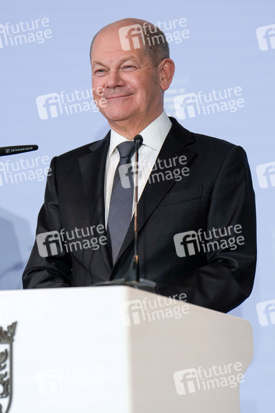 Olaf Scholz bei der Pressekonferenz zur Ministerpräsidentenkonferenz zur Flüchtlingspolitik von Bund und Ländern in der Vertretung des Landes Hessen beim Bund. Berlin, 06.03.2024