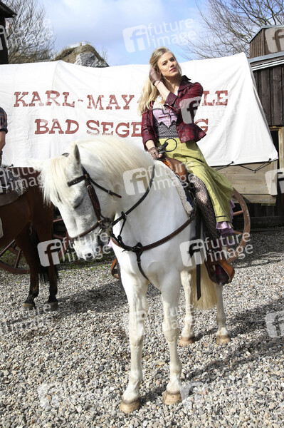 Schauspielerin, Prominenz, Fototermin, Pressetermin, Photocall, Fotocall, Unterhaltung, Entertainment, Kultur, Western, Freilichtbühne, Freilichttheater, Freilufttheater, Kalkbergstadion, Open Air Theater, 68. Karl-May-Spiele 2019, Unter Geiern - Der Sohn des Bärenjägers, Tier, Pferd