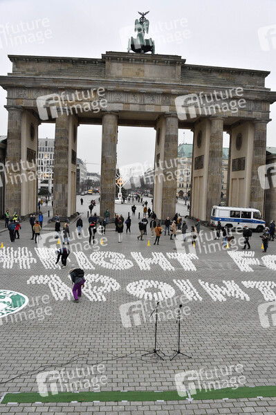 Fridays for Future Lichteraktion unter dem Motto FightFor1Point5 am Brandenburger Tor. Berlin, 11.12.2020