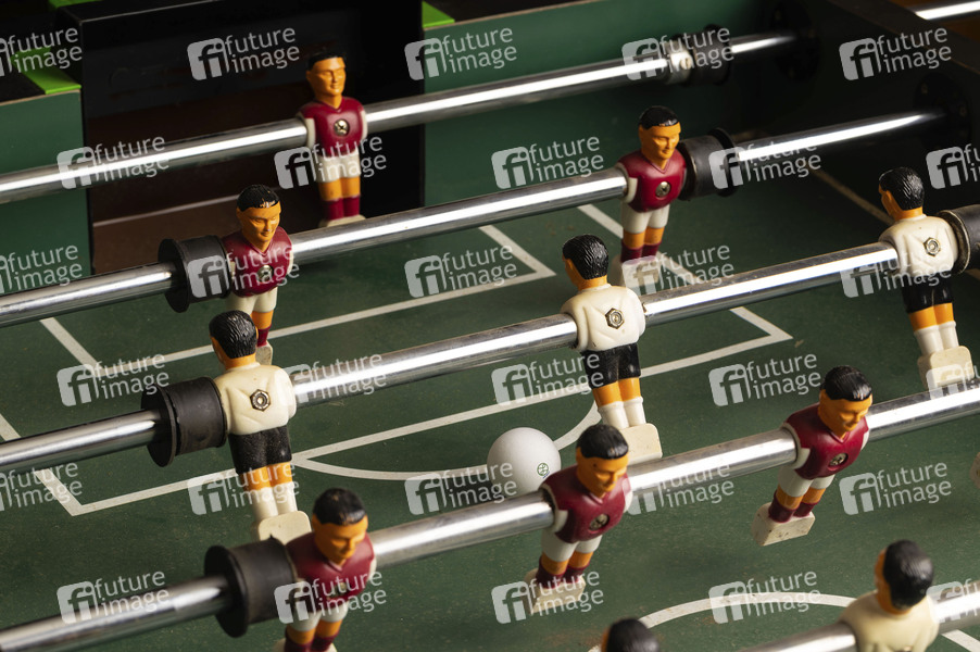 Tischfußball ist eine mit einem Spielgerät ausgeübte Ballsportart und ein dem Fußball nachempfundenes Geschicklichkeitsspiel. Ziel ist es, mit an dreh- und bewegbaren Griffstangen oder Spielreihen über einer rechteckigen Spielfläche angebrachten Spielfiguren den Spielball ins gegnerische Tor zu befördern. (Symbolfoto, Themenfoto)