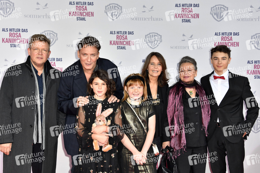 Justus von Dohnanyi, Oliver Masucci, Riva Krymalowski, Hannah Kampichler, Caroline Link, Ursula Werner und Marinus Hohmann bei der Premiere des Kinofilms 'Als Hitler das rosa Kaninchen stahl' im Zoo Palast. Berlin, 08.12.2019