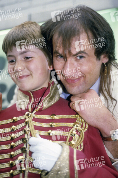 Fish mit LP-Cover-Model Robert Mead beim Photocall zum Release des Marillion Albums 'Misplaced Childhood' im Ronnie Scotts. London, 15.06.1985