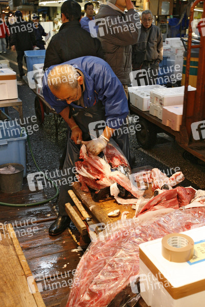 Sightseeing Tokio. Auf dem Tsukiji-Fischmarkt im Stadtbezirk Chuo