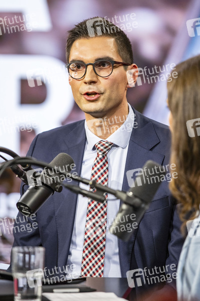 Sepp Müller bei der Live-Aufzeichnung des Podcasts 'Klima-Labor von ntv' zum Thema 'Wie retten wir die deutsche Wirtschaft?' im RTL-Hauptstadtstudio. Berlin, 16.10.2025