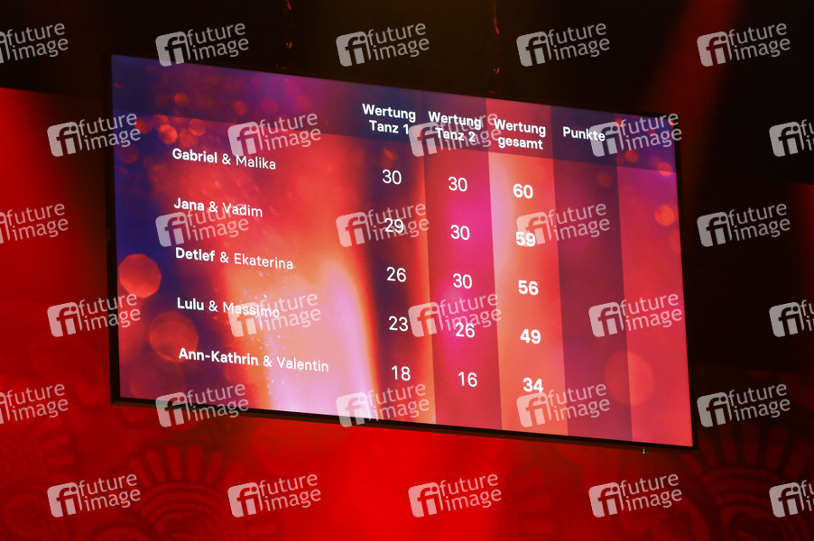 Fernsehen, TV, Show, Tanzshow, Fernsehshow, Promi-Tanzen, Unterhaltungsshow, TV-Show, Unterhaltung, Entertainment, Kultur, RTL, Lets Dance, Anzeigetafel