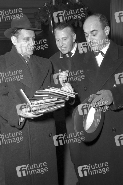 Artur Brauner bei Yvonne De Carlos Ankunft im Berliner Hotel. Berlin, 04.07.1953