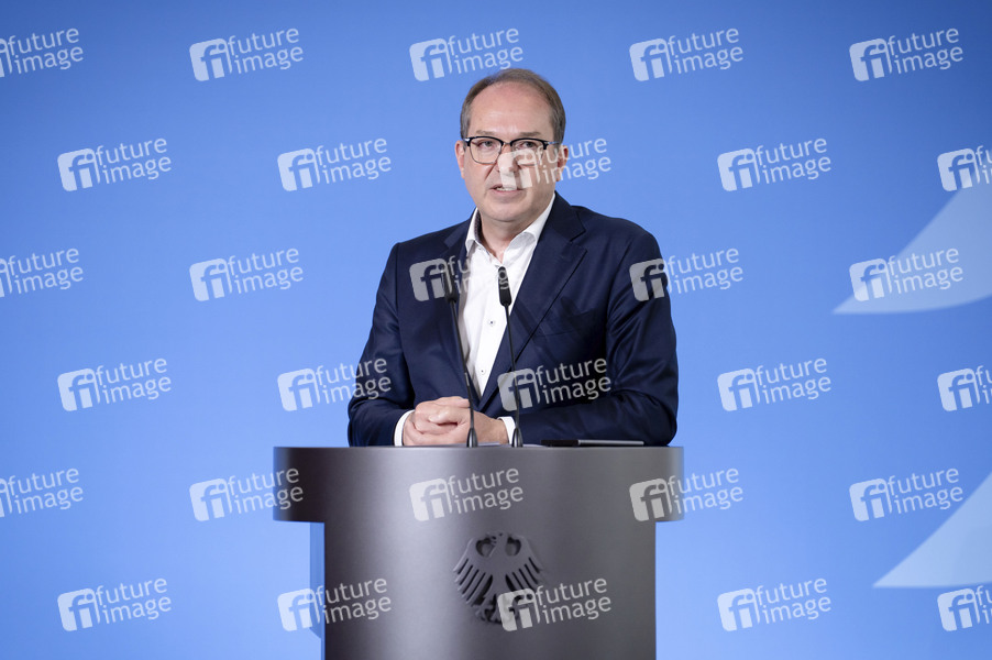 Alexander Dobrindt beim Pressestatement zu den Beschlüssen des Bundeskabinetts im Bundesministerium des Innern. Berlin, 23.07.2025