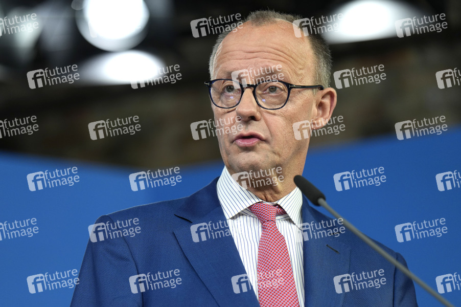 Friedrich Merz bei der Pressekonferenz zur gemeinsamen Sitzung der Vorstände der CDU Deutschlands und der CSU Bayern zur Beratung und Beschlussfassung des Wahlprogramms der CDU/CSU zur Bundestagswahl 2025 im Hotel Telegraphenamt. Berlin, 17.12.2024