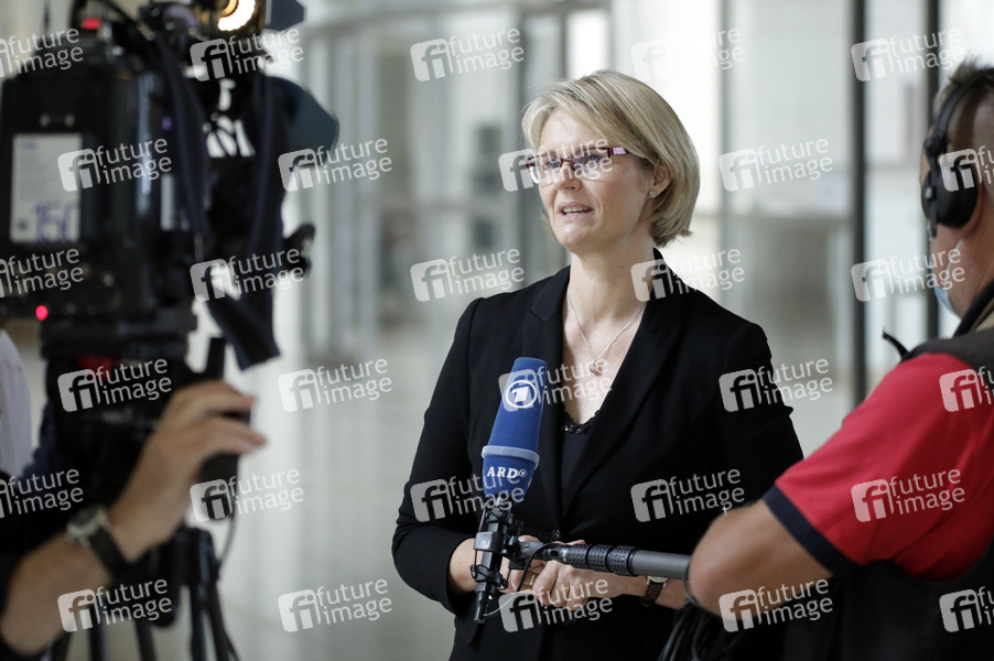 Anja Karliczek bei einem Pressestatement am Rande der 237. Sitzung des Deutschen Bundestages im Reichstagsgebäude. Berlin, 25.06.2021