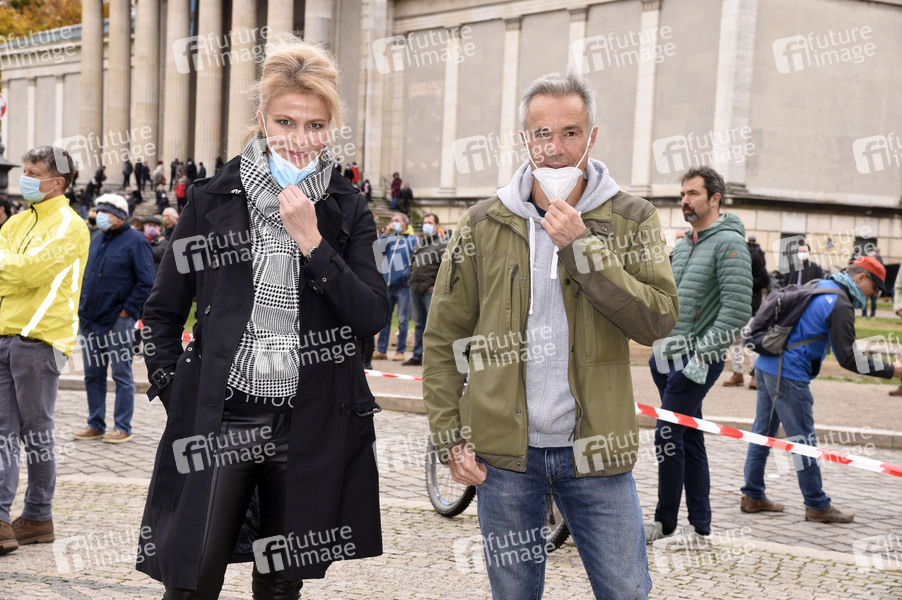 Ursula Gottwald und Hannes Jaenicke bei der Kundgebung 'Aufstehen für Kultur' auf dem Königsplatz. München, 24.10.2020