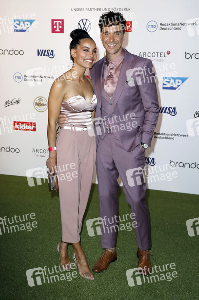 Seven mit Ehefrau Zahra Dettwyler-Abdalla bei der Verleihung der Sepp-Herberger-Awards 2022 in der Telekom-Hauptstadtrepräsentanz. Berlin, 28.03.2022