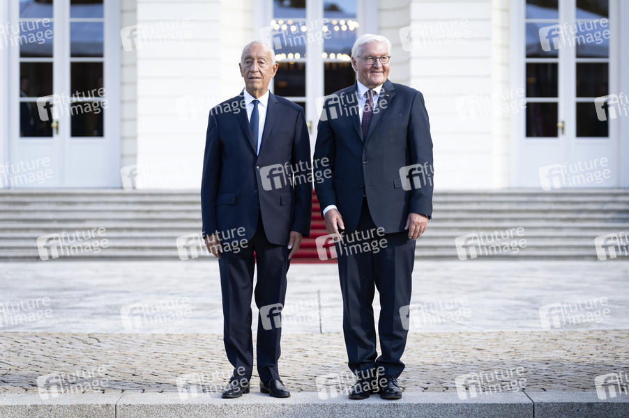 Marcelo Rebelo de Sousa und Frank-Walter Steinmeier bei der Begrüßung des Präsidenten der Portugiesischen Republik mit militärischen Ehren und zum gemeinsamen Gespräch im Schloss Bellevue. Berlin, 12.09.2025