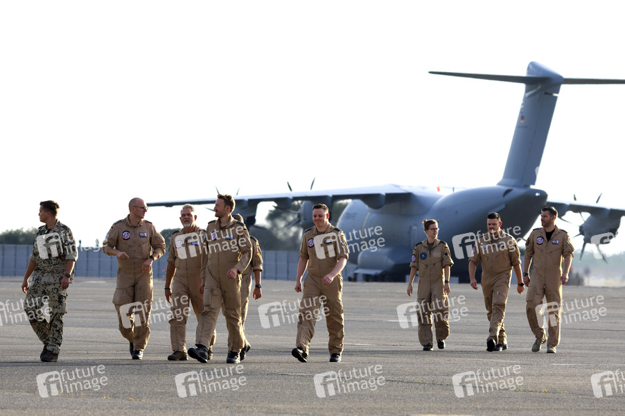 Flieger der Bundeswehr bei der Ankunft von Eurofighter Typhoon der deutschen Luftwaffe auf dem Luftwaffenstützpunkt Hyakuri. Zum ersten Mal besuchen deutsche Eurofighter Japan. Der Besuch der Eurofighter in Japan folgt auf mehrwöchige internationale Manöver in Australien, bei denen die Deutschen auch mit japanischen Soldaten geübt haben. Omitama, 28.09.2022